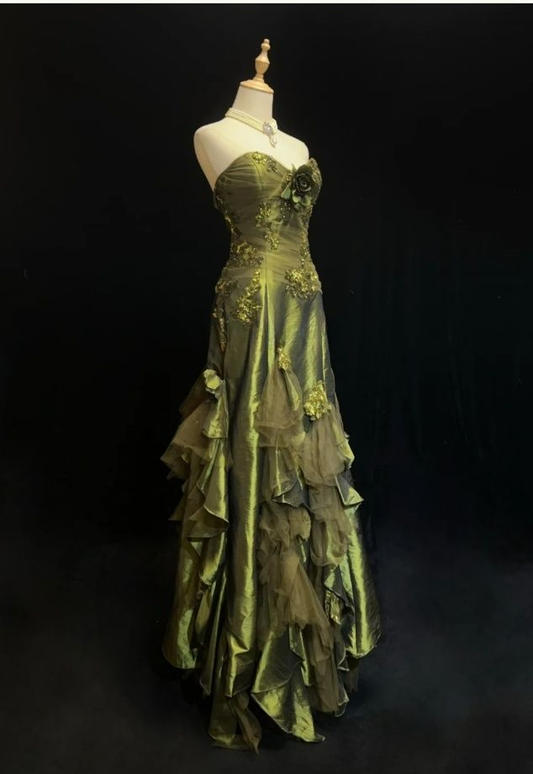 Robe de soirée longue vintage à volants J8082