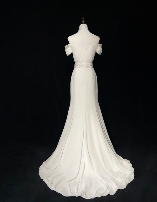Robe de mariée blanche sirène à épaules dénudées J7978