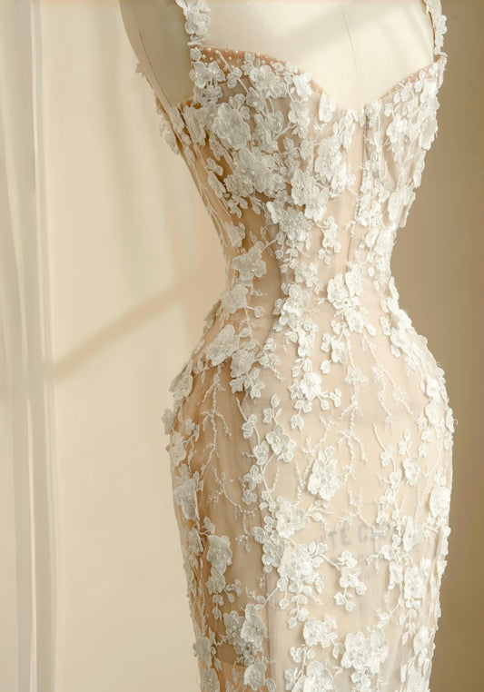 Robe de mariée sirène en dentelle, robe de soirée formelle, J6603