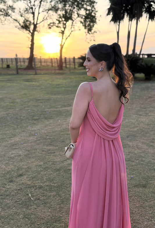 Robe fourreau rose dos nu pour anniversaire, robe d'invitée de mariage, robe de soirée, J7075