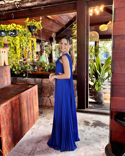 Robe de mariée plissée bleu roi en mousseline de soie J6897