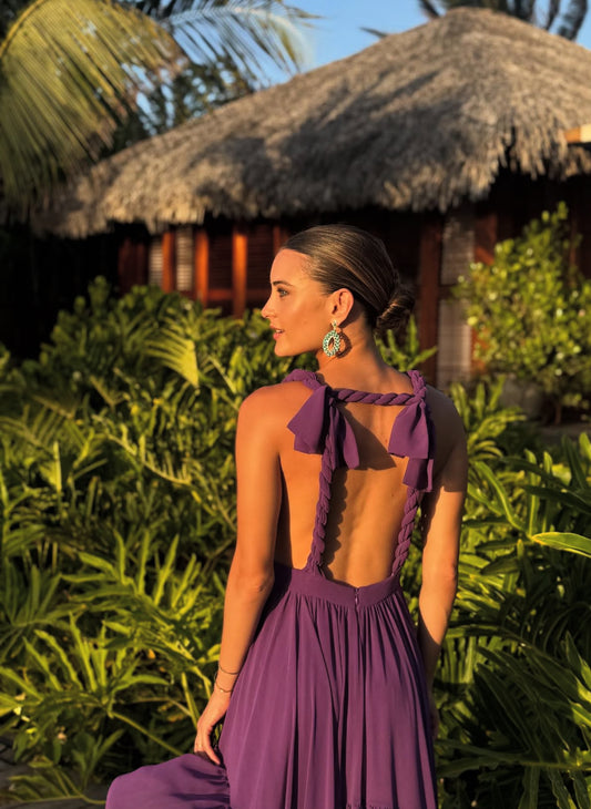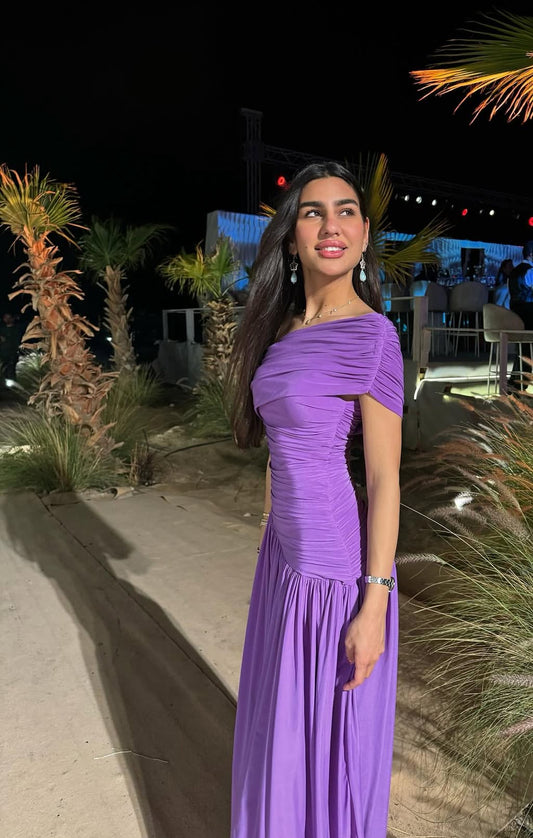 Robe de bal violette à volants en mousseline de soie, robe d'invitée de mariage d'été J6432