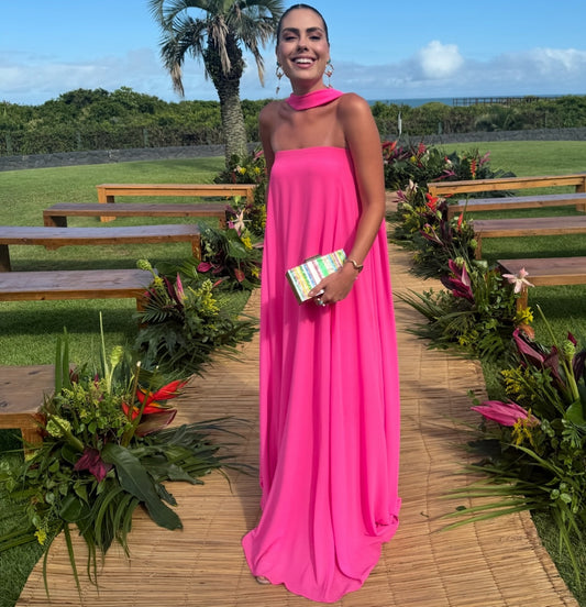 Robe de bal bustier coupe trapèze rose vif, robe d'invitée de mariage J5435