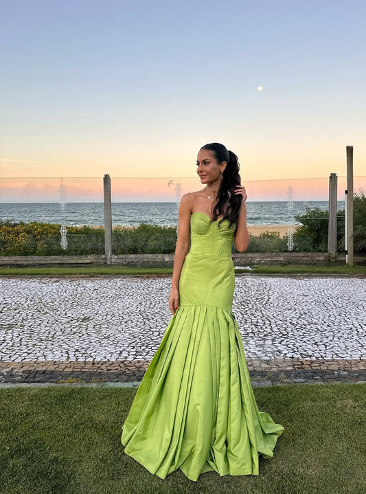 Robe de mariée sirène en satin vert cœur, robe de bal, robe de soirée, J7069