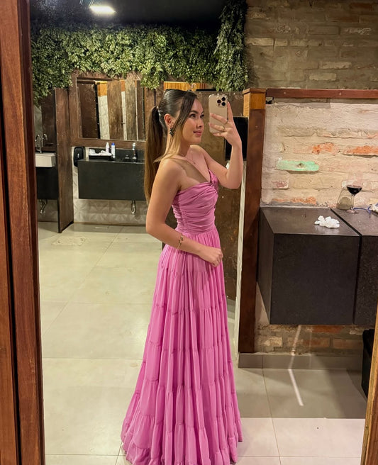 Robe de soirée formelle à volants et coupe trapèze pour invité de mariage J7384