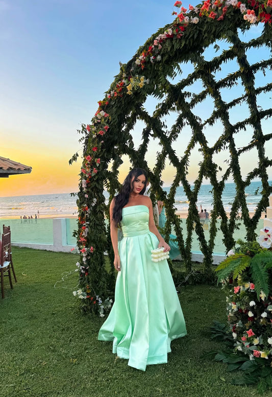 Robe de bal longue en satin coupe trapèze, robe de soirée pour invité de mariage J8020