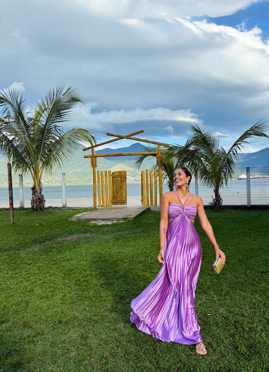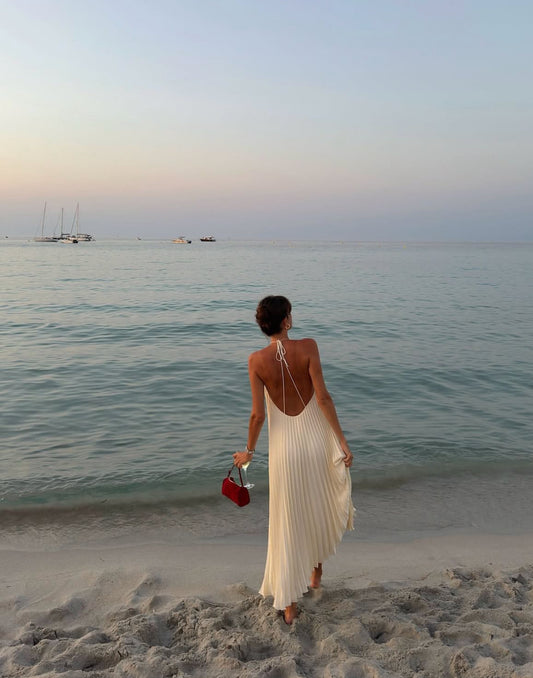 Robe d'été longue plissée dos nu, robe de bal, robe d'invitée de mariage J8003
