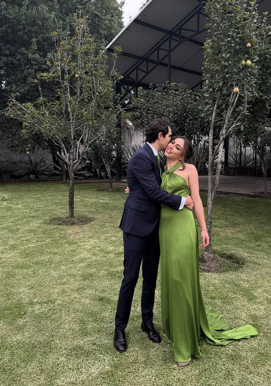 Robe fourreau verte pour invité de mariage, robe de bal longue J7834