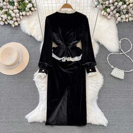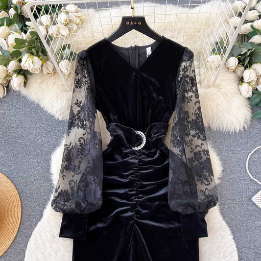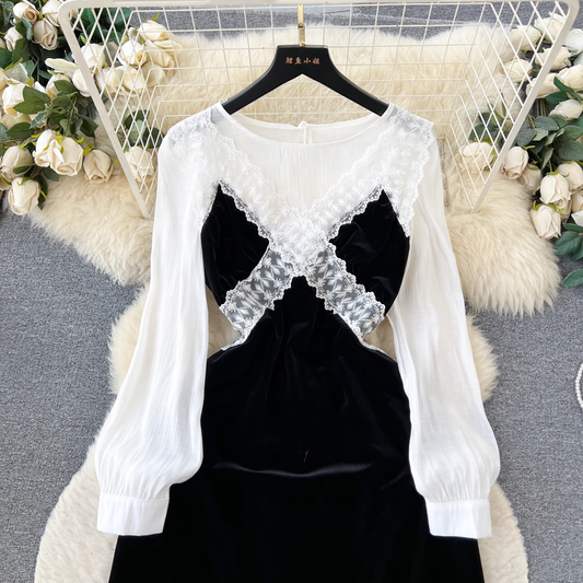 Robe à manches longues en dentelle et maille Robe en velours 1877