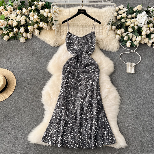Robe à bretelles spaghetti à paillettes, jupe queue de poisson pour fête d'anniversaire 1883