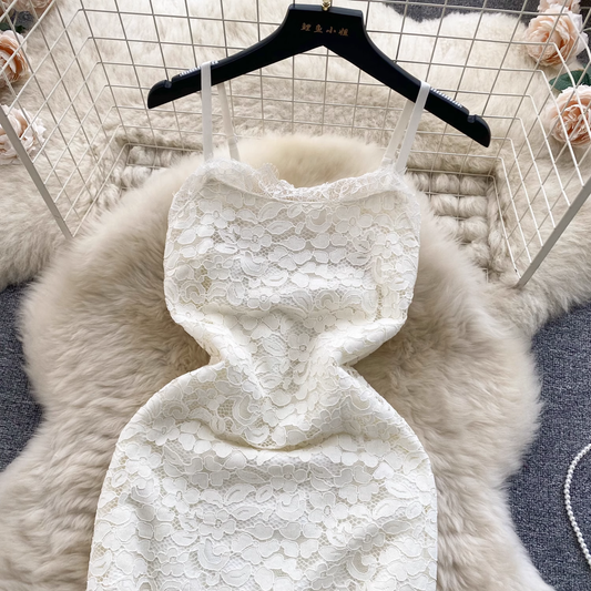 Robe de bal courte à bretelles spaghetti en dentelle 1889