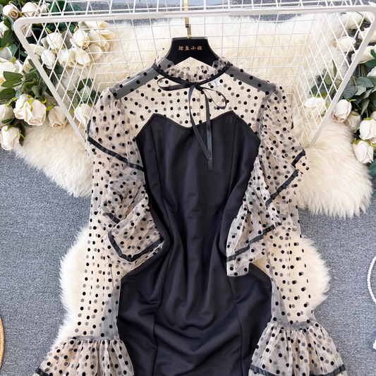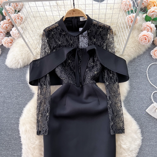 Robe de bal fourreau dos élégante en dentelle à manches longues 1862
