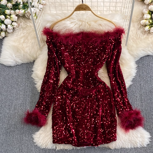 Robe courte fourreau à paillettes et épaules dénudées 1873