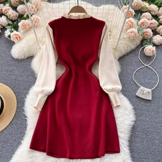 Robe à manches longues en tricot à volants 1856
