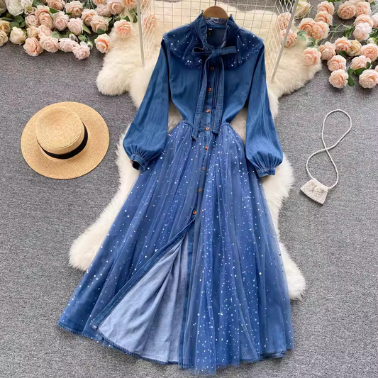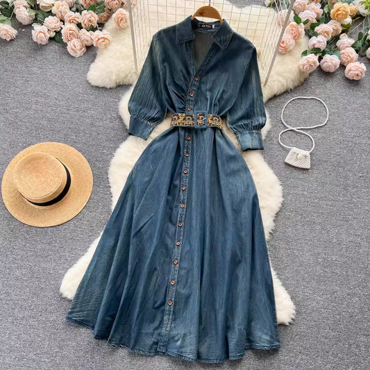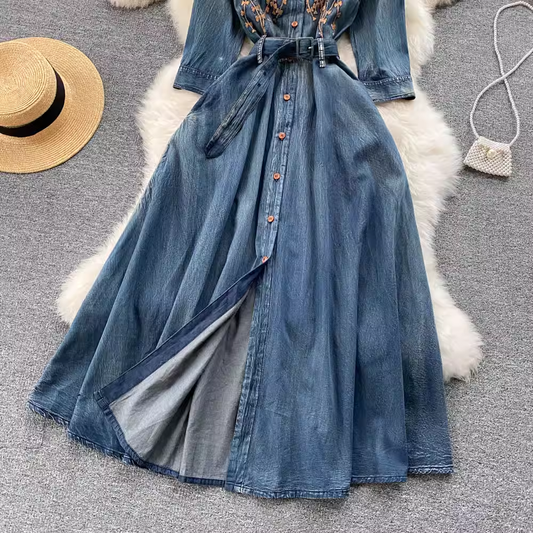 Robe longue en jean brodée rétro 1812