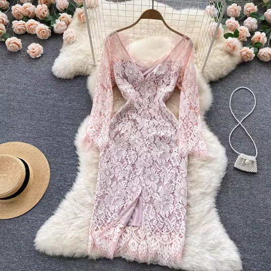 Robe fourreau sexy en dentelle douce et ajustée pour l'automne 1854