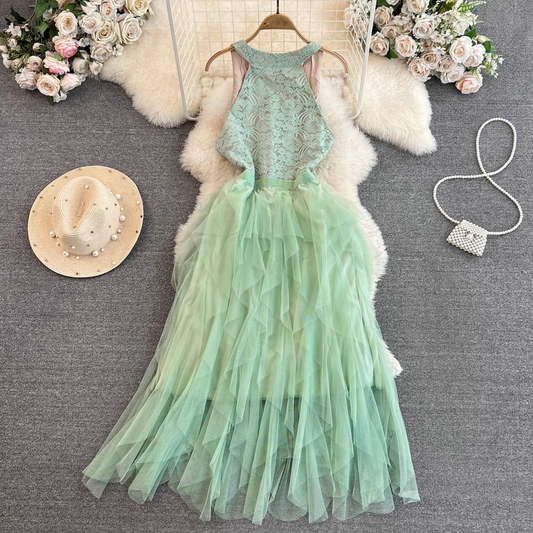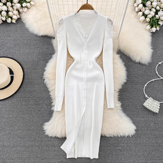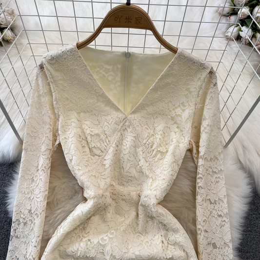 Robe fendue en dentelle à col en V rétro printemps et automne 1776