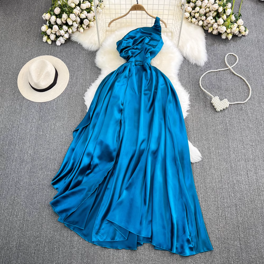 Robe de soirée en satin à une épaule et coupe trapèze 1782