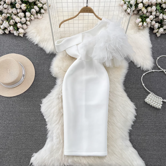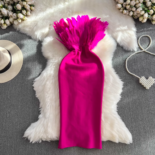 Robe de soirée mi-longue en tricot avec haut tube en plumes 1783