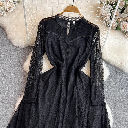 Robe longue élégante en dentelle française printemps-automne, col rond, coupe trapèze, 1711