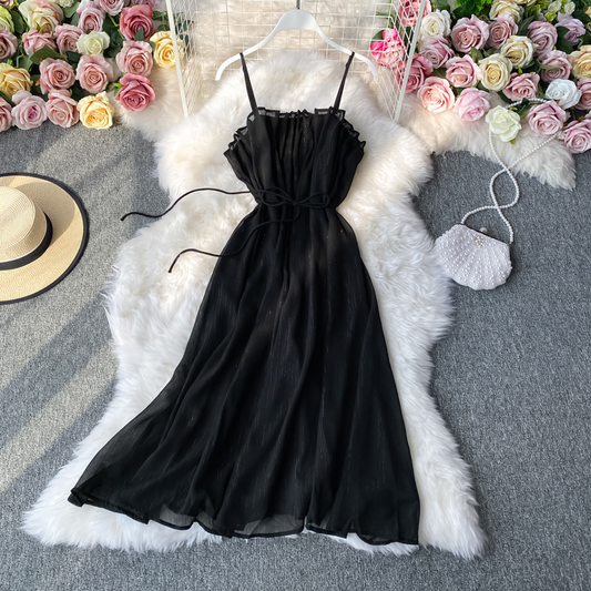 Robe à bretelles spaghetti style fée rétro Jupe d'été en tulle 856