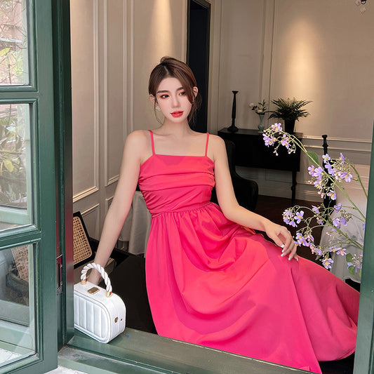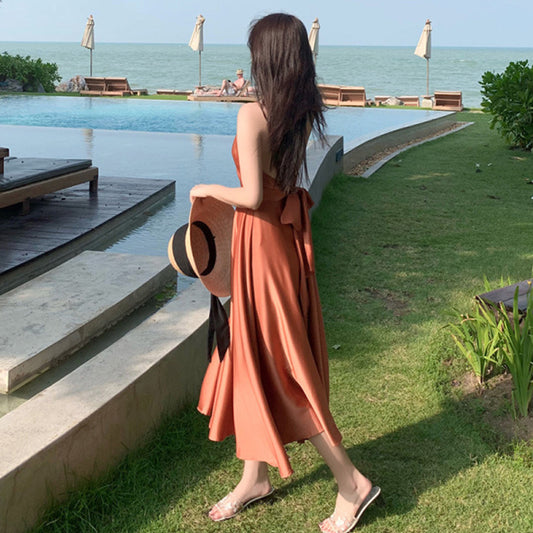 Jupe d'été dos nu, col en V, bretelles spaghetti, longue, 820