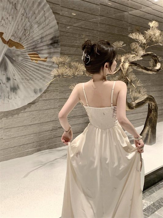 Robe d'été à bretelles spaghetti, jupe longue rétro douce 783