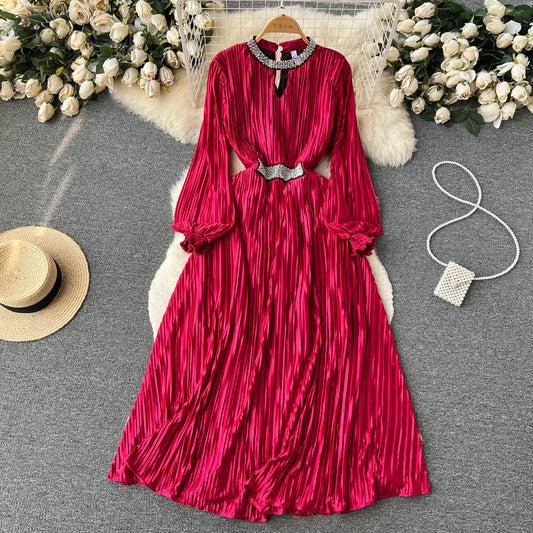 Robe à manches longues pour femme, style français, printemps-automne, en satin plissé, 479