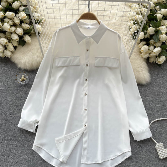 Robe chemise blanche longue et jupe longue pour femme, nouvelle collection printemps-automne 481