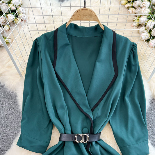 Robe de costume rétro française à col et jupe longue élégante 488