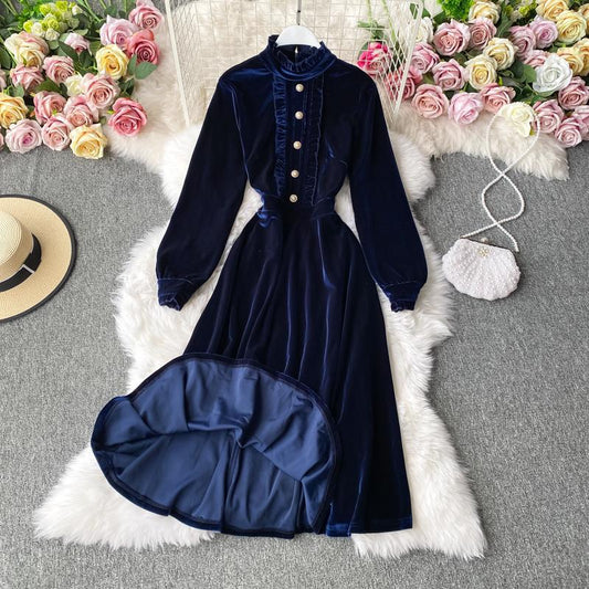 Robe tailleur automne et hiver, nouvelle jupe trapèze en velours à manches longues 458