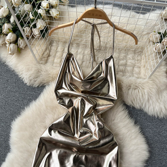 Robe sexy en cuir PU sans manches, jupe longue sirène 461