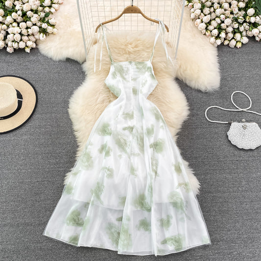 Robe de fée trapèze à col carré et imprimé à l'encre française, nouvelle collection d'été 469