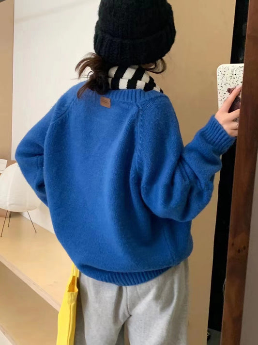 Pull ample et décontracté à manches longues et col en V pour l'automne 1943