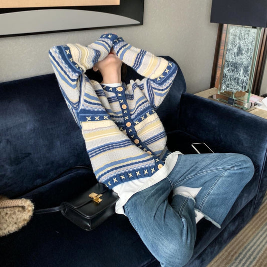 Cardigan tricoté automne et hiver, pull ample à manches longues et col en V, veste 1900