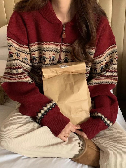 Pull de Noël automne et hiver ample style rétro paresseux pull tricoté 1827