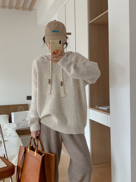 Pull style paresseux automne et hiver, pull à capuche doux, pull ample 1814
