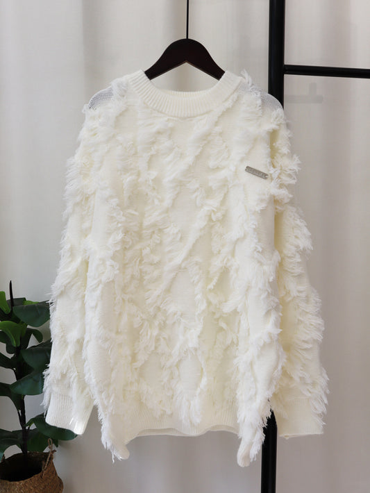 Pull mi-long à pompons pour l'automne et l'hiver, style décontracté et ample, 1823