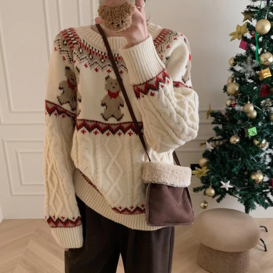 Pull de Noël rétro, pull ample en tricot pour l'automne et l'hiver 1824