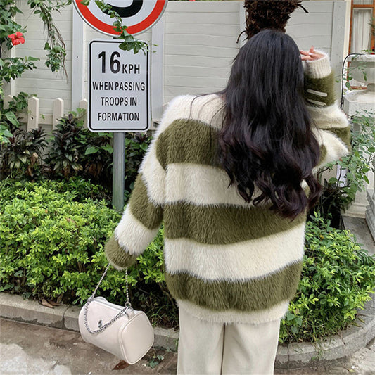 Cardigan ample à rayures et fermeture éclair pour l'automne, col montant et poches 1816