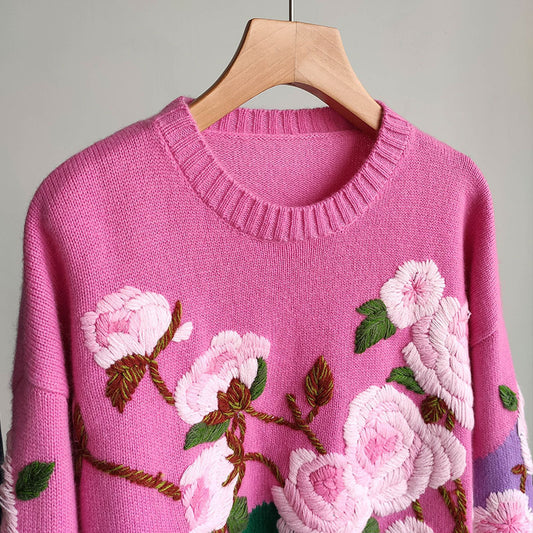 Pull ample et court brodé à la main pour femme, nouvelle collection automne-hiver 329