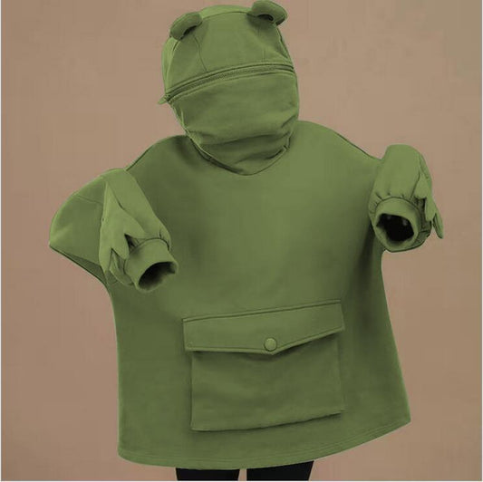 Pull polaire chic à capuche pour femme, motif grenouille, haut 330