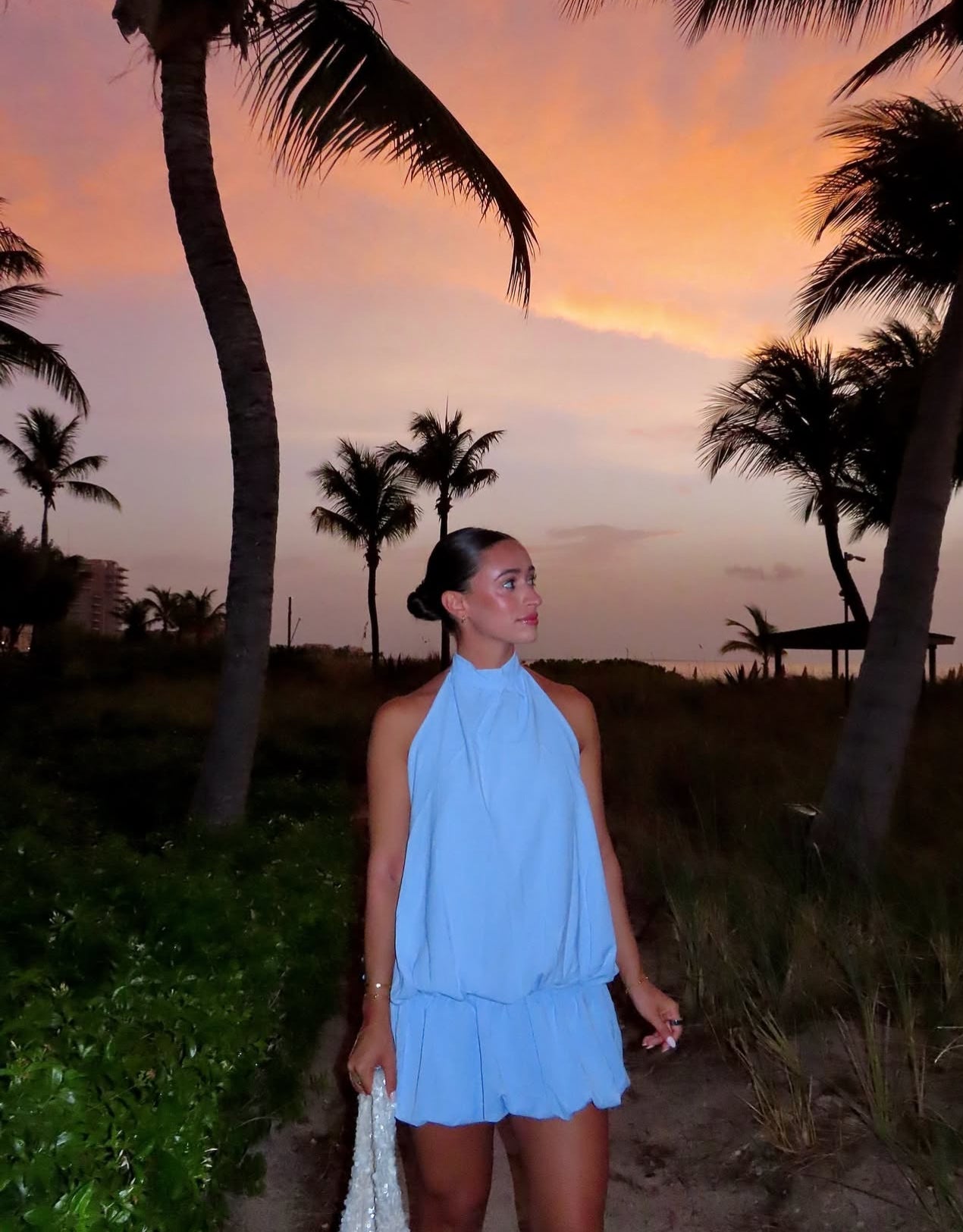Robe de soirée courte bleue en mousseline de soie, tenue d'anniversaire, coupe trapèze, J8005