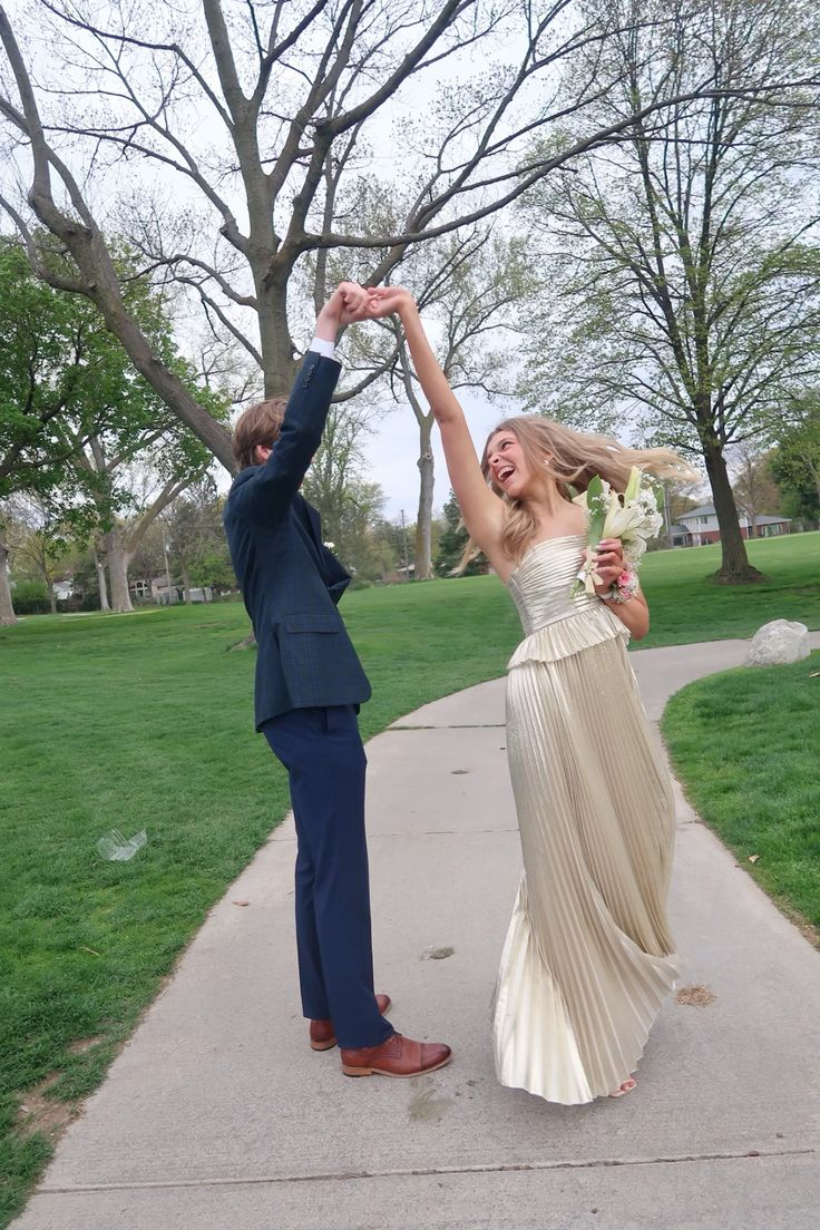 Robe de bal plissée dorée coupe trapèze, robe de soirée formelle J6831