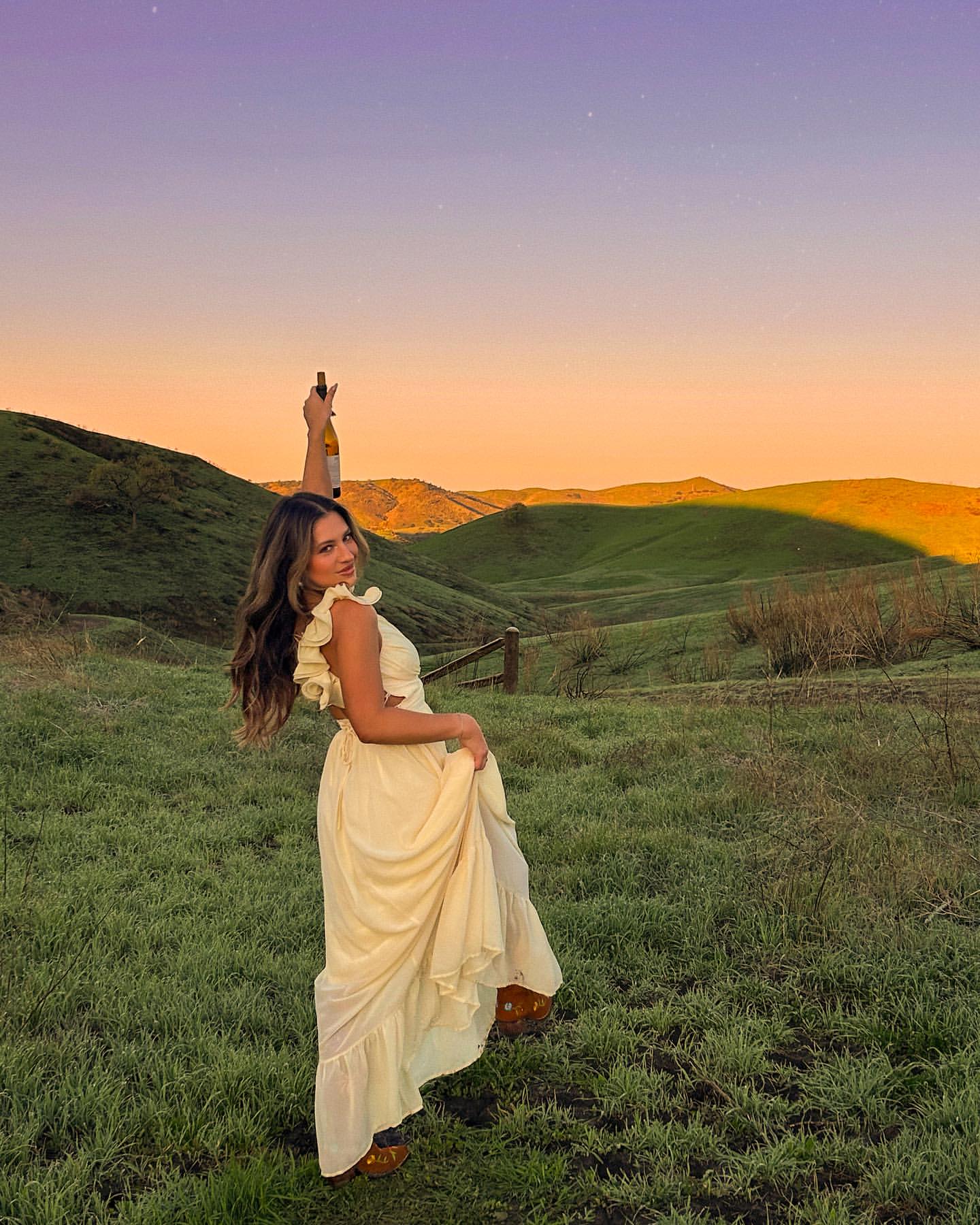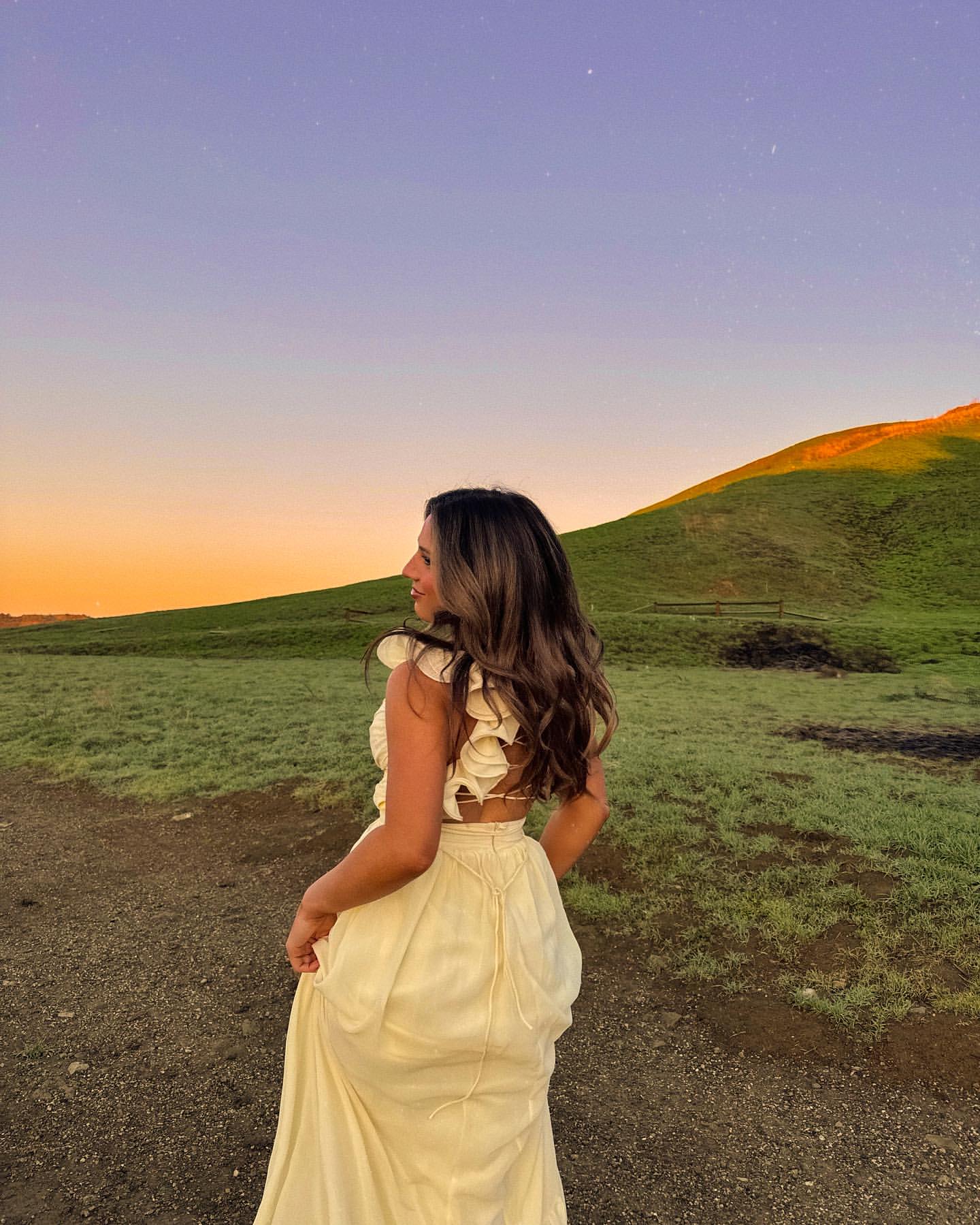 Robe de bal trapèze jaune en mousseline de soie, robe de demoiselle d'honneur, J7043