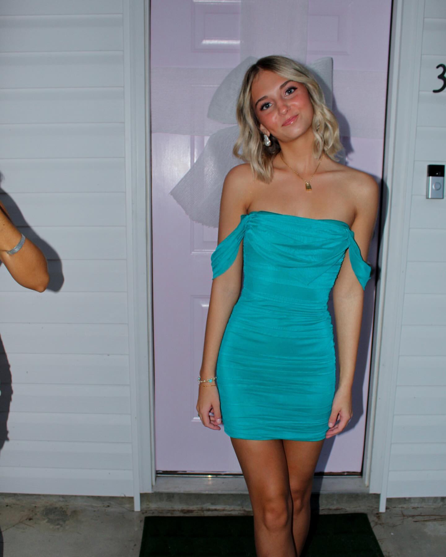 Robe de bal courte fourreau à épaules dénudées J6196