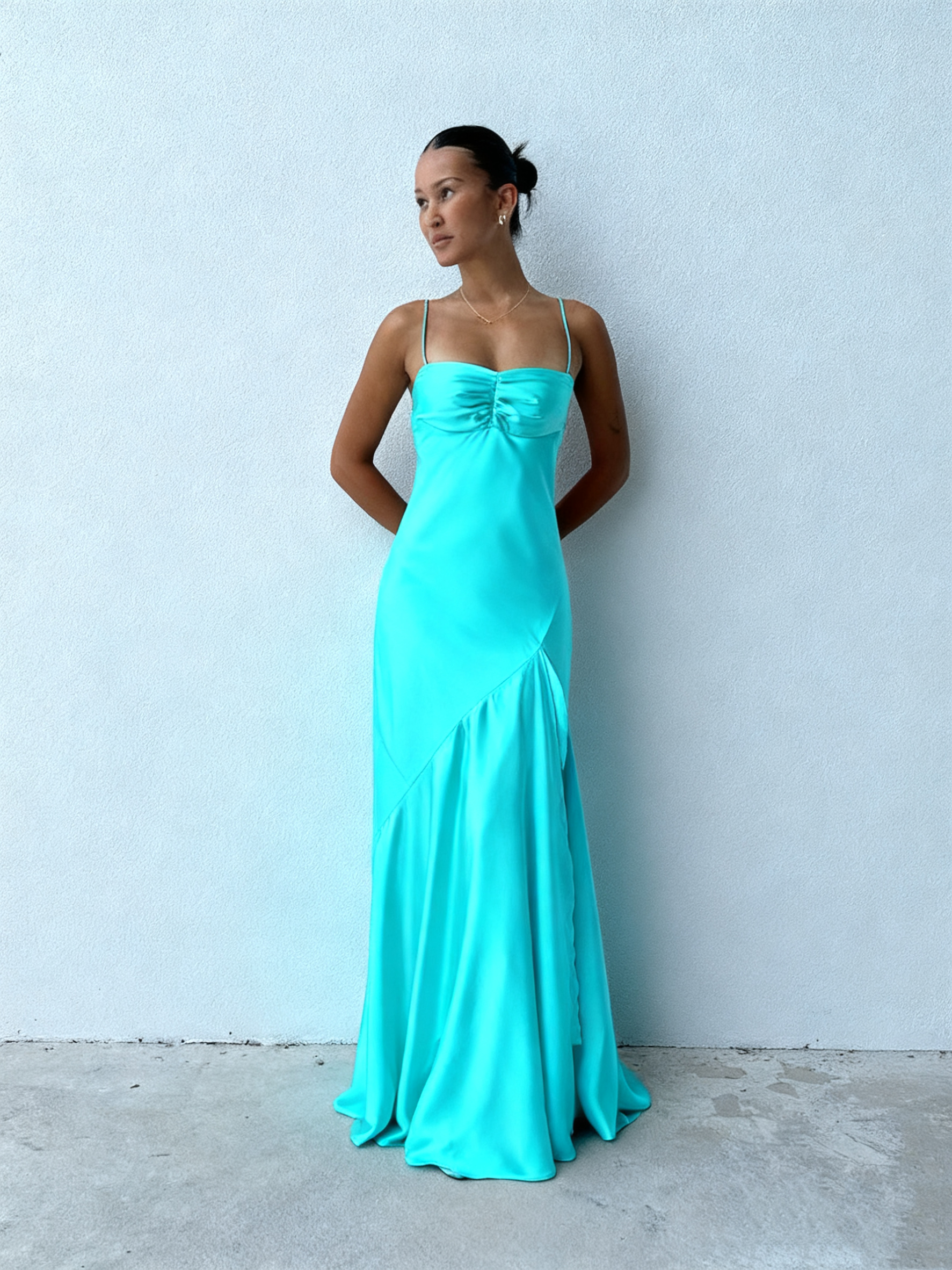Robe de bal fourreau bustier bleu Tiffany, robe de soirée en satin, robe de demoiselle d'honneur, J2717
