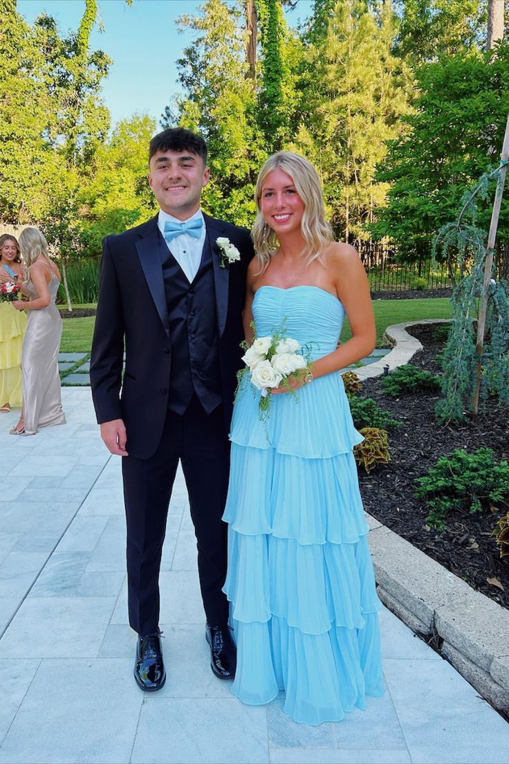Robe de bal bustier en mousseline bleue, robe de demoiselle d'honneur J6642