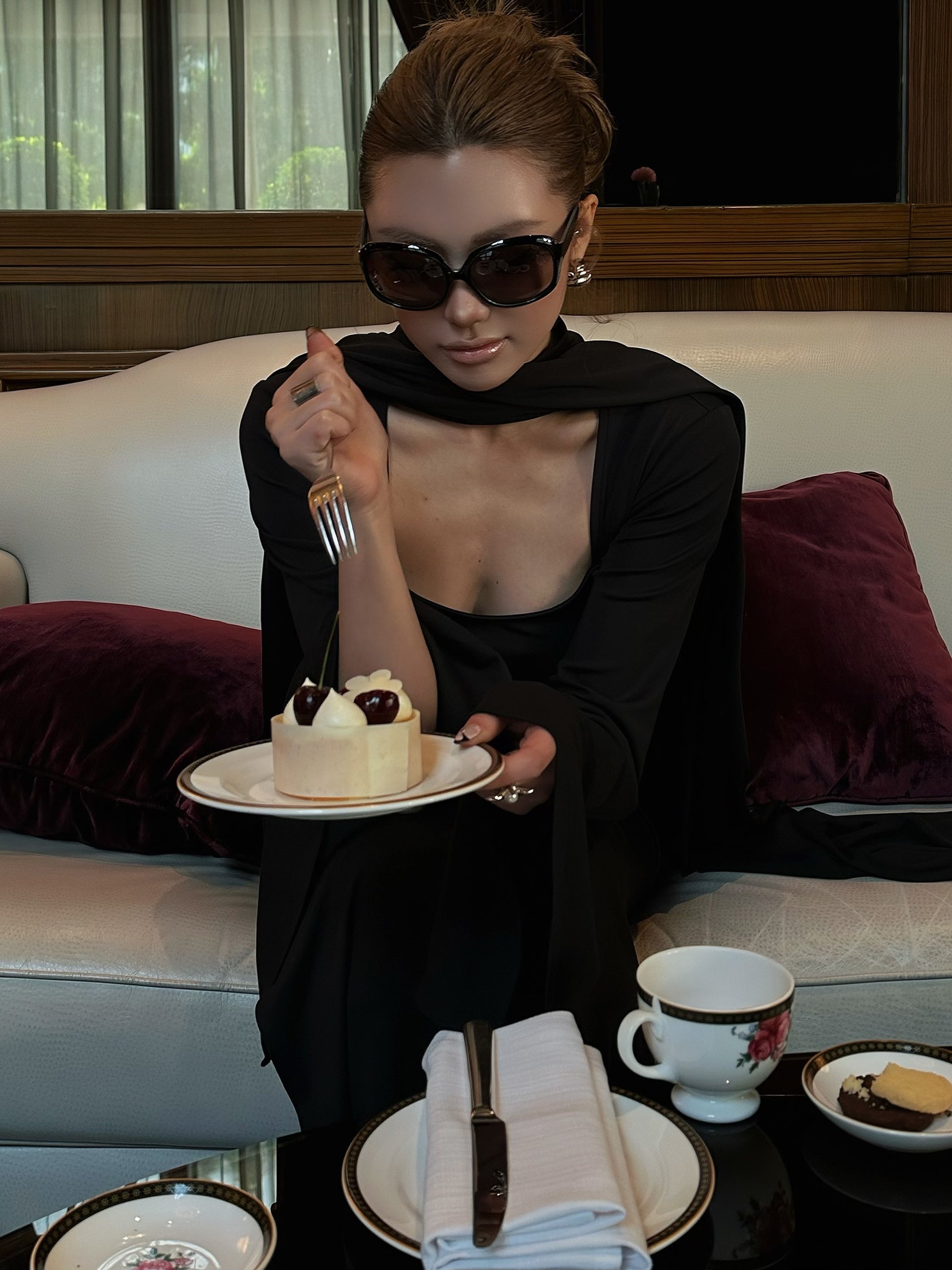 Black Square Collar Shawl Dress Two-piece Gown Modest Evening Dress L87