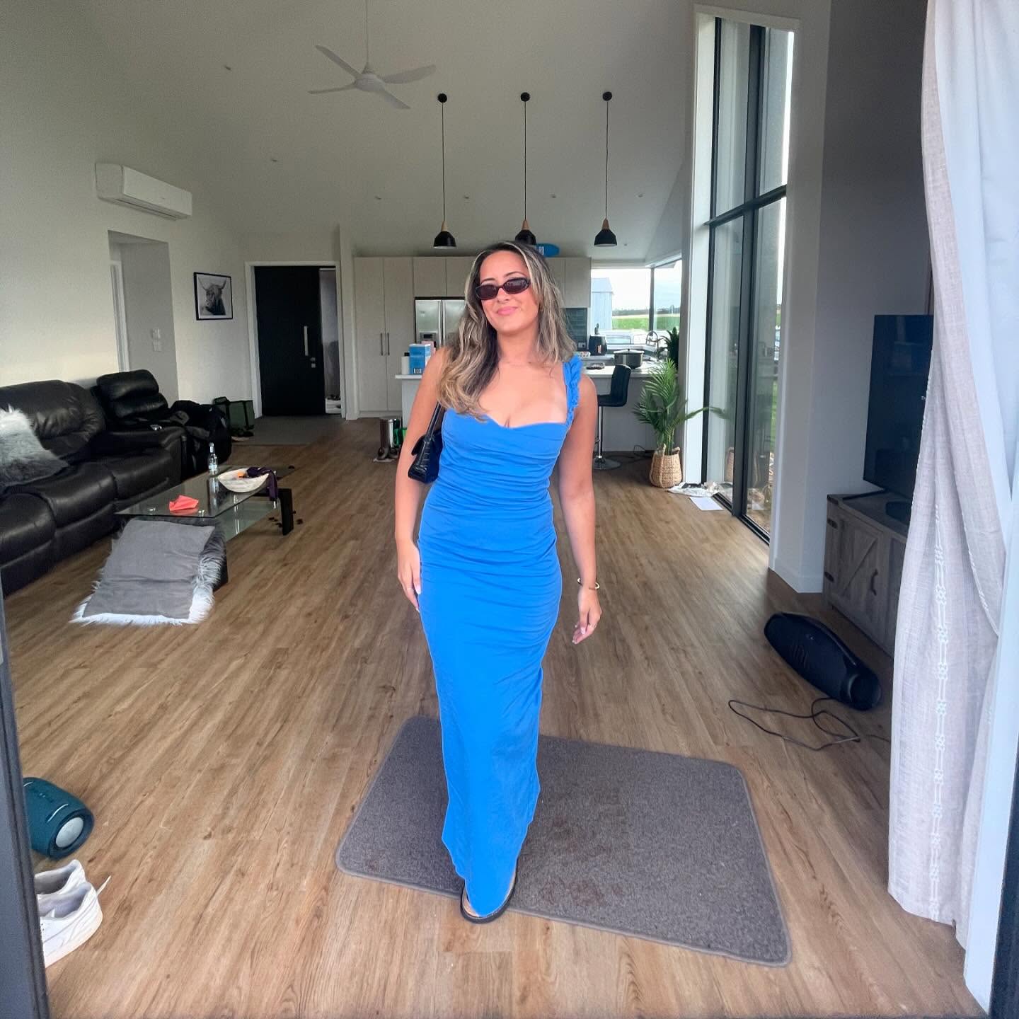 Blue Sheath Prom Dress Ruffle Straps Evening Gown J6236